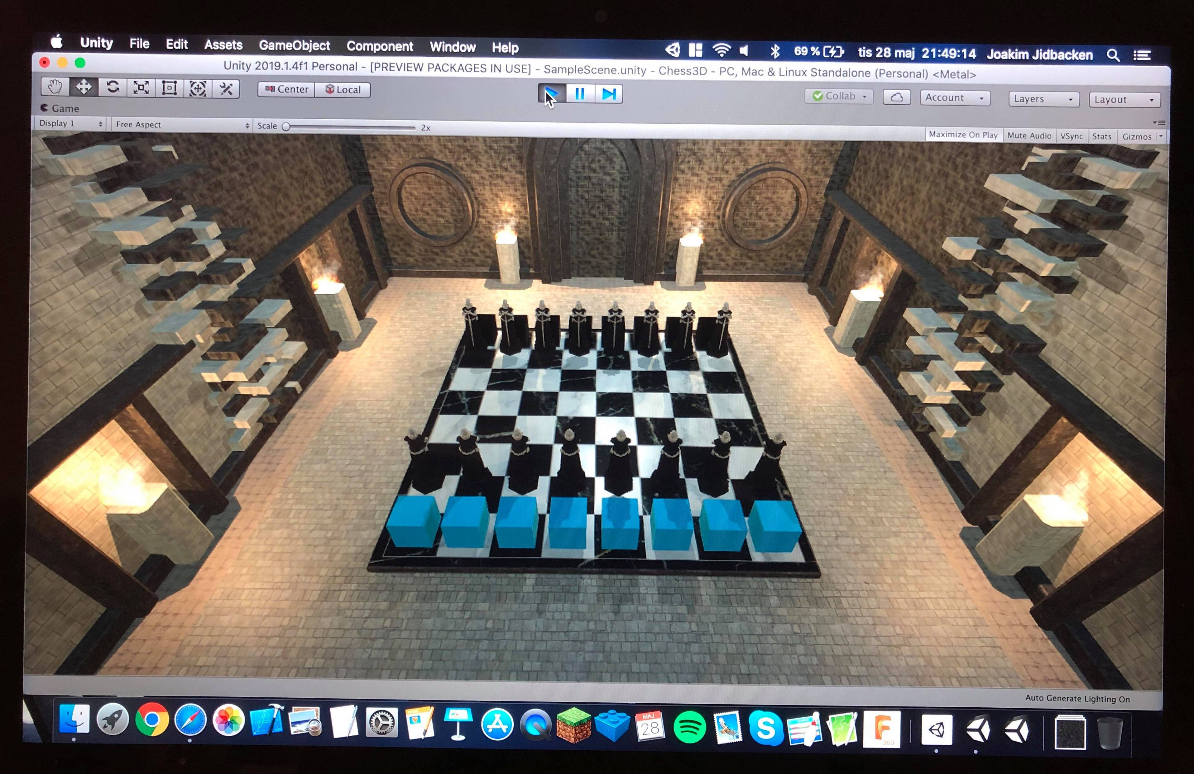 Blender- was used to animate models, create the scene and texture the chess board